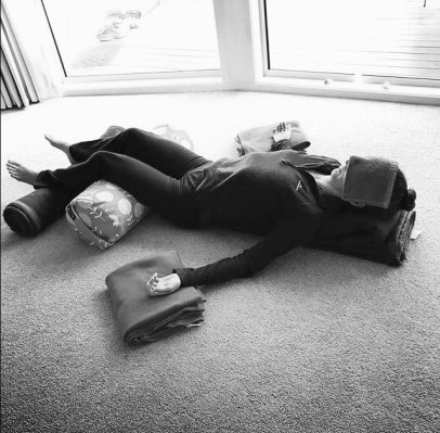 Supta Baddha Konasana Karen B&W